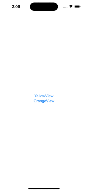 - 루트 뷰는 NaviBaseView이며, 이 내비게이션 스택 위에 NaviYellowView와 NaviOrangeView를 각각 쌓아 내비게이션으로 화면 전환을 구현한다.